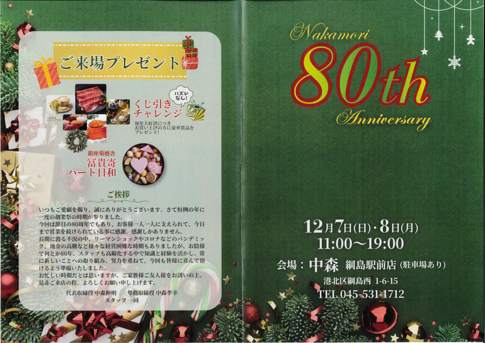 12/7(日)〜12/8(月)「80周年創業祭」を開催します!